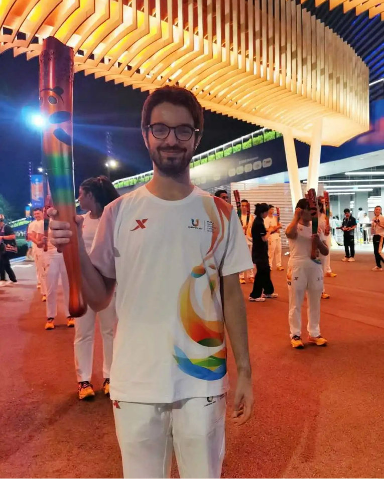 7月初,苏耘哲意外接到来自成都大运会执委会的电话,告知他入选参加大运会开幕式重要仪式。早前,经过学校推荐和层层选拔,苏耘哲作为留学生代表被推荐为大运会开幕式参与者之一。但他并不知道自己已经成为点燃主火炬塔的31名火炬手候选人。直到开幕式现场排练,苏耘哲被确定为主火炬塔点火仪式火炬手,他激动万分,第一时间将这个好消息分享给远在意大利的家人们。1959年,意大利举办首届世界大学生夏季运动会,也是至今承办世界大学生运动会最多的国家。2023年的夏天,苏耘哲作为意大利籍在蓉留学生代表,与来自五湖四海、世界各地的火炬手们共同点燃成都大运会主火炬塔,他和家人们都认为这是中国与意大利、苏耘哲与成都注定的缘分,感到由衷高兴和自豪。