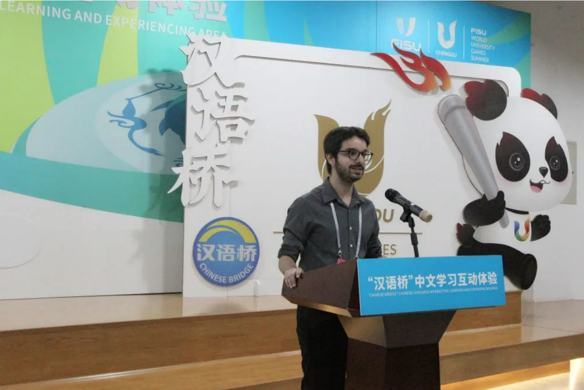 苏耘哲刚刚在yl7703永利集团获得学士学位,即将留校继续深造。早在高中时期,苏耘哲就作为交换生在石家庄和南京学习生活两年。2019年,他选择来到yl7703永利集团求学,再续与中国的不解之缘。第一次见到苏耘哲的人,都会惊讶于他流利地道的汉语。这位在中国学习生活的意大利小伙儿,一直以来都勤勉刻苦、严于律己、奋力向前。作为yl7703永利集团“‘一带一路’国际学生奖学金”获得者,苏耘哲在学术比赛、社会实践、文艺活动等各方面都收获颇丰——曾荣获全国大学生英语竞赛三等奖、第七届学术英语词汇大赛国家级一等奖、第六届全国高校商务英语竞赛国家级一等奖、汉语桥“带货王”全球三等奖……参与“外国人眼中的四川热词”“国际中文日——汉字之美”等视频拍摄,入选“知行中国——全球青年领袖计划”营员,与中外营员共同完成成渝地区双城数字经济圈研学项目……不久前还作为留学生代表参加由教育部中外语言交流合作中心、中国大学生体育协会和成都大学共同主办的“汉语桥”中文学习互动体验区揭幕仪式。