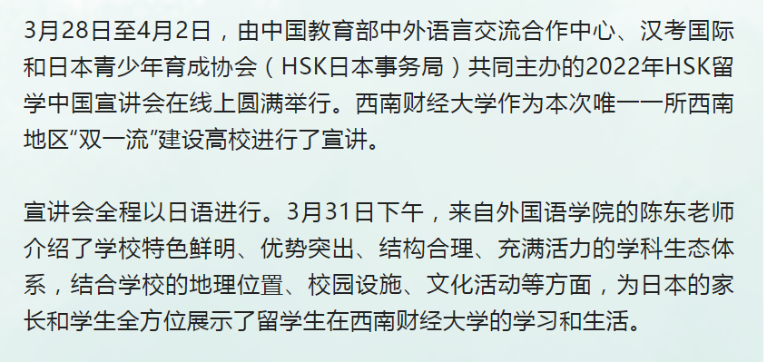 2022年HSK留学中国线上宣讲会(日本站)顺利举行