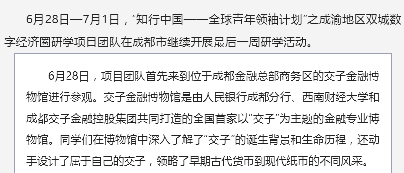 “知行中国——全球青年领袖计划”之成渝地区双城数字经济圈研学项目第三周活动精彩回顾