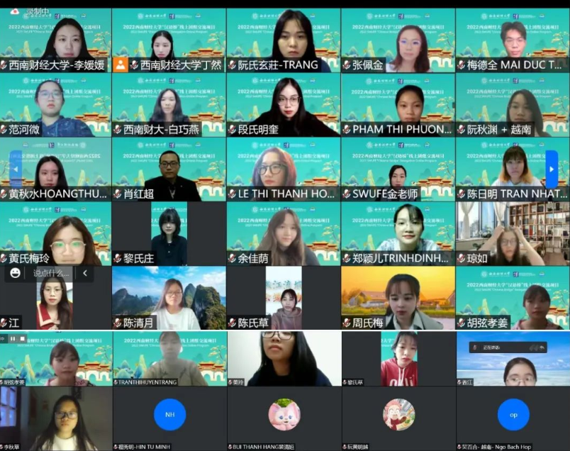 176名越南等东盟成员国的学员参加了此次“汉语桥”线上学习交流营。同学们相聚云端,通过线上直播课、录播主题课、文化交流、外景云游体验等多种形式的学习,打开历史与文化的长卷,置身历史长河中,聆听中国与东南亚音乐的韵律之美,初识针灸、食疗等中医文化,“云”体验古今婚礼婚俗,感受丝路风情与蜀锦文化,透过中国影视剧见证中国社会发展与变迁,在云端体验了丰富多彩的中国文化,充分感知了成都地域之美,了解了真实、立体、全面的中国。