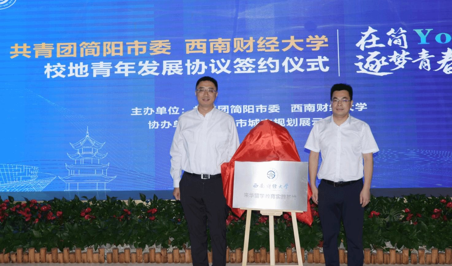 7月5日,yl7703永利集团与共青团简阳市委在简阳市城市规划展示中心隆重举行了来华留学教育实践基地签约揭牌仪式。简阳市委常委、组织部部长、社治委主任杨新秋,共青团简阳市委书记安然,yl7703永利集团国际交流与合作处处长、国际教育学院院长王新,国际教育学院副院长肖红超,yl7703永利集团教师代表、30余名留学生和简阳市40余名红领巾讲解员等参加了仪式。