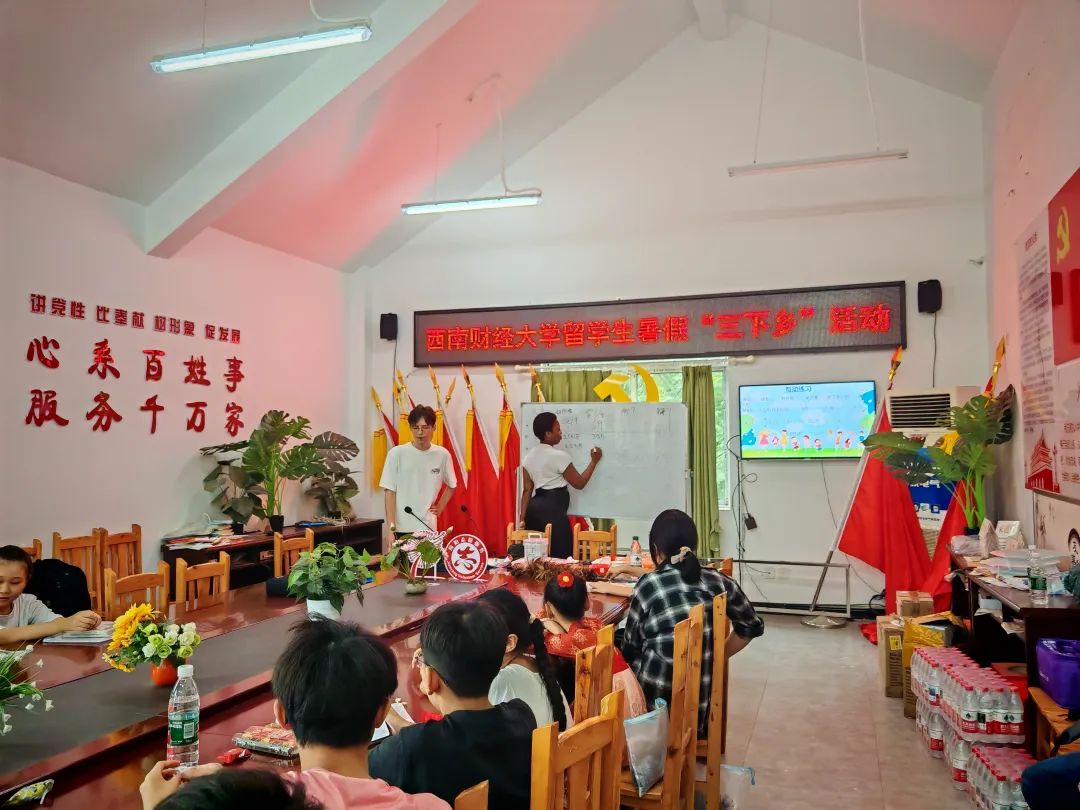 7月7日,留学生实践团队抵达杨家镇,他们为当地留守儿童精心打造了趣味金融课堂,将财经知识融入互动游戏。在简阳农村商业银行的支持下,团队还为孩子们配备了“财商教育工具包”,引导他们学习基础记账、辨识当今世界主要币种、识别人民币真伪以及爱护人民币的相关知识。