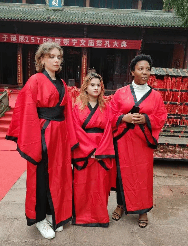 活动中,留学生们与来自成都师范学院、崇宁小学等学校的大中小学生共同参与了这场文化盛宴,并与参礼人员齐声诵读《论语》经典篇章。庄严肃穆的仪式氛围、古朴典雅的礼乐表演,使留学生们深切感受到中华礼乐文明的深厚底蕴。