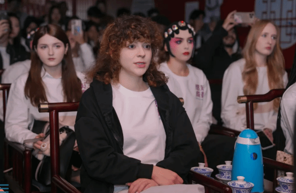 活动中,成都市川剧研究院的专业演员为留学生们讲解了川剧的历史渊源、唱腔特色与行当分类。在互动环节,4名留学生参与了完整的川剧妆造体验,亲身感受传统戏曲妆容的艺术魅力,并在专业演员的指导下学习了水袖、刀枪等表演技巧。随后,全体人员共同观看了变脸、吐火等经典川剧绝技表演,沉浸式体验了“茶戏合一”的巴蜀文化韵味。