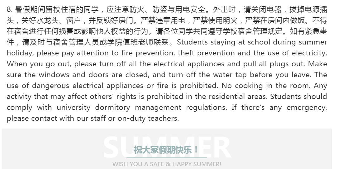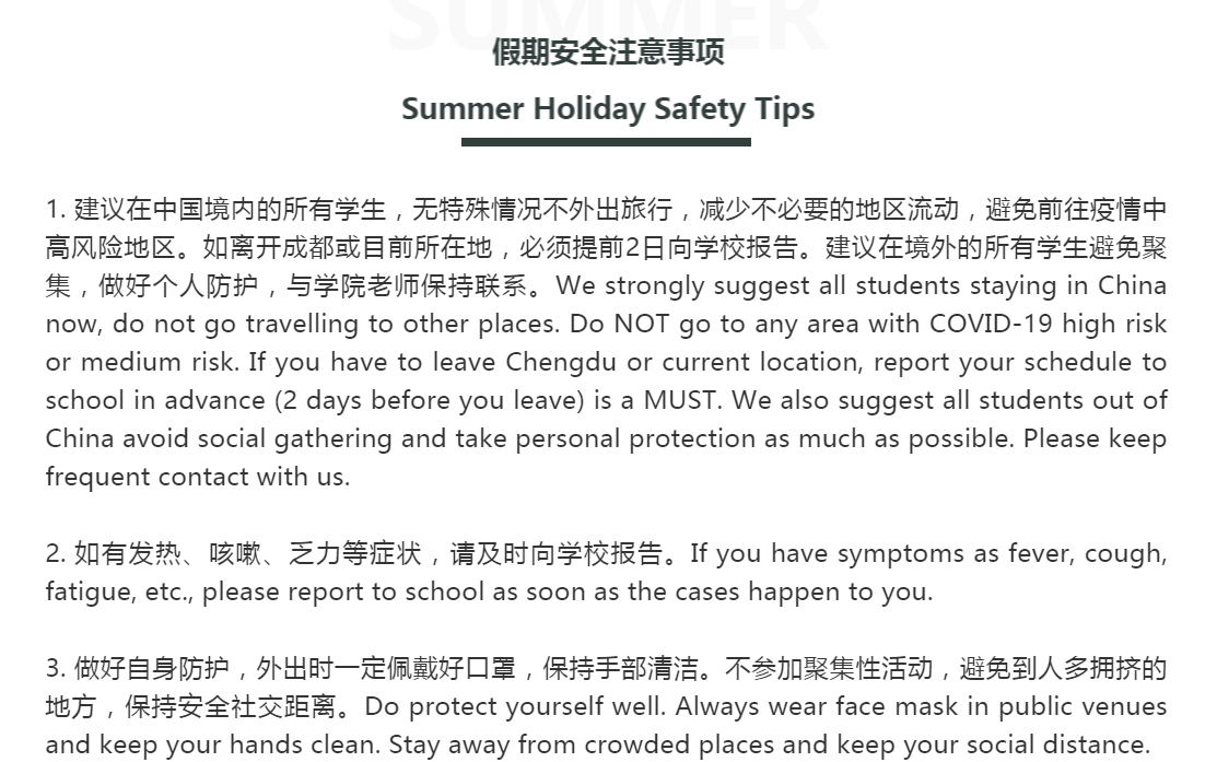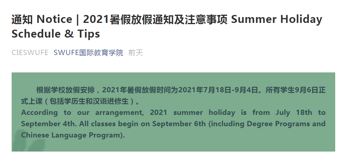 2021暑假放假通知及注意事项 Summer Holiday Schedule & Tips